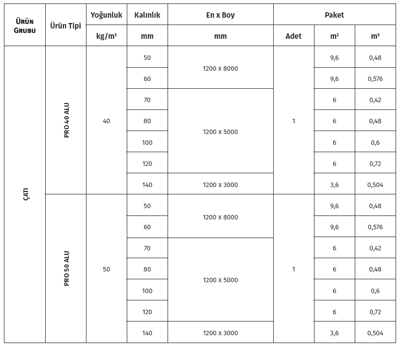 Çatıların mertek altı, mertek üstü uygulamalarında, aşık aralarında ve gezilemeyen çatı aralığında çatı arası zemin bölümlerinde kullanılmaktadır.